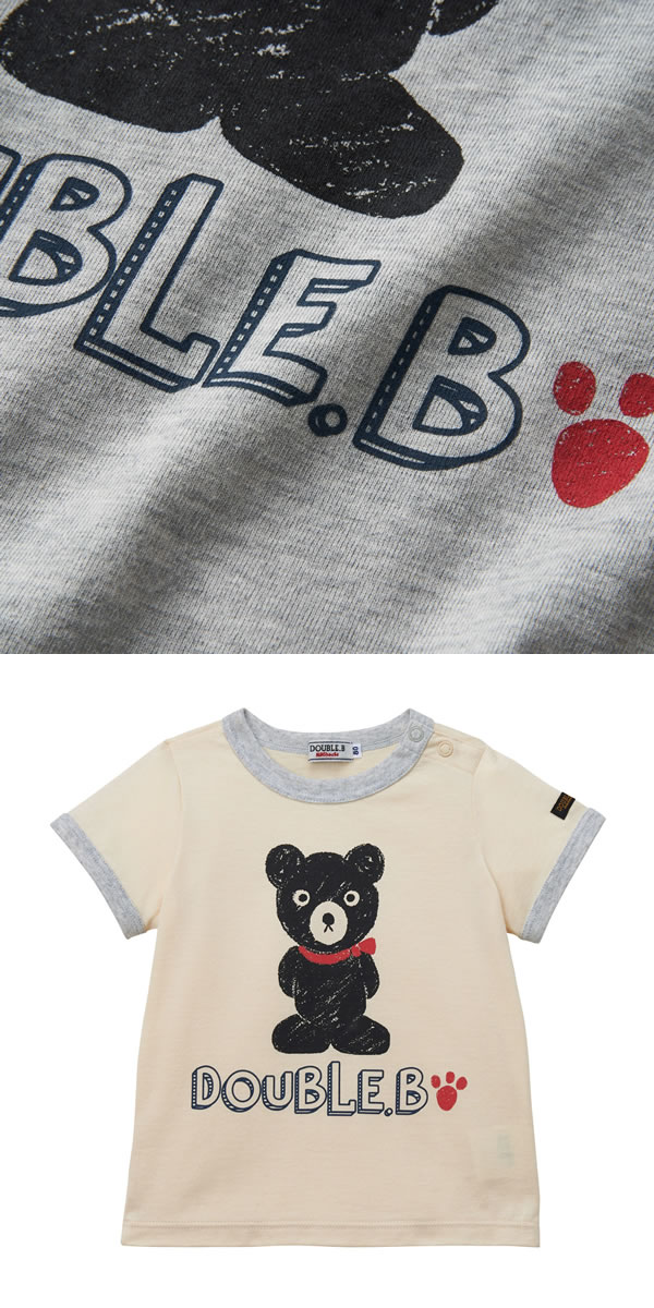 ダブルB(ミキハウス) Double B by MIKIHOUSE かすれ調プリント半袖Tシャツ【日本製】【メール便可】 かすれ調プリントの半袖Tシャツです。