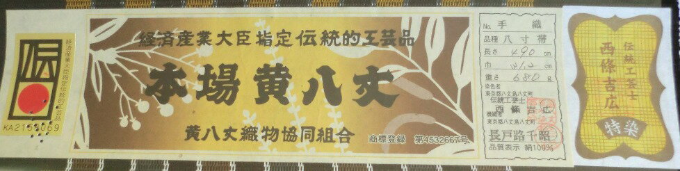 本場黄八丈 八寸帯 商品説明 本場黄八丈 八丈島に古くから伝わる絹織物で、国の伝統的工芸品に指定されており、 東京都の無形文化財に指定されています。